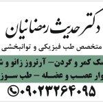 حدیثه رمضانیان، متخصص در شهر قدس است. مطب حدیثه رمضانیان در تهران- شهر قدس- میدان قدس- ابتدای خیابان چمن- ساختمان آوا- طبقه 4- واحد 7 جهت نوبت دهی با شماره 09023264095 و در صورت عدم پاسخ با شماره 09128468834 تماس بگیرید(ساعت تماس از 9صبح تا 10شب) نوبت دهی اینترنتی فعال نیست. واقع شده است که در صورت نیاز میتوانید با شماره 09023264095 تماس بگیرید.
