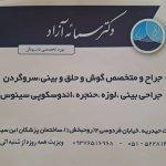 سمائه آزاد، متخصص در شهر تربت حیدریه است. مطب سمائه آزاد در خیابان فردوسی۲(روحبخش۱).ساختمان پزشکان ابن سینا.طبقه دوم(لطفا قبل از مراجعه به مطب جهت هماهنگی لازم تماس بگیرید.) واقع شده است که در صورت نیاز میتوانید با شماره 051-52281321 تماس بگیرید.