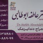 عاطفه ابوطالبی نجف آبادی، دکترای در شهر نجف آباد است. مطب عاطفه ابوطالبی نجف آبادی در نجف آباد، فردوسی مركزي، نرسيده به 17 شهریور ،قبل از چهارراه پليس واقع شده است که در صورت نیاز میتوانید با شماره 031-42649801 تماس بگیرید.