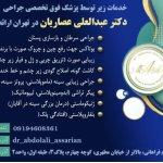 • تخصص عبدالعلی عصاریان: فلوشیپ جراحی پستان/ متخصص جراحی عمومی/ دکترای حرفه‌ای پزشکی