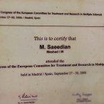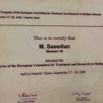 ✅ از فعالیت های دکتر سعیدیان به عنوان یک پزشک و فعال صنفی و رسانه ای به دلیل تلاش در ارتقاء سلامت مردم تقدیرهای متعددی شده است که از جمله آنها می توان معرفی به عنوان «حامی سلامت » در سال ۱۳۸۸ توسط ریاست دانشگاه علوم پزشکی مشهد ، تقدیر به عنوان پزشک و کارشناس مجری برنامه های رادیو و تلویزیون سلامت توسط قائم مقام صدا و سیما ، تقدیر به عنوان فعال صنفی و رسانه حوزه سلامت و روابط عمومی توسط روسای قبلی و فعلی سازمان نظام پزشکی استانهای خراسان و تقدیر به پاس پژوهش ها و مقالات تخصصی معتبر درباره درمان بیماری MS توسط انجمن متخصصین مغز و اعصاب اشاره کرد.