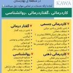 آماده ی ارائه خدمات در زمینه ی مشکلات و اختلالات جسمی، ذهنی و گفتاری ،اختلالات یادگیری و مشکلات تحصیلی، حرکات اصلاحی زانو ضربدری و پرانتزی، سی پی و فلج مغزی و بیماری های ژنتیکی، اتیسم ، بیشفعالی،اختلال خواندن و نوشتن،انواع سندرم ها، توانبخشی بعد از جراحی دست و پا، مشکلات یکپارچگی حسی، بلع و بدغذایی،مشاوره فرزندپروری و مهارت های اجتماعی و ارتباطی میباشد.